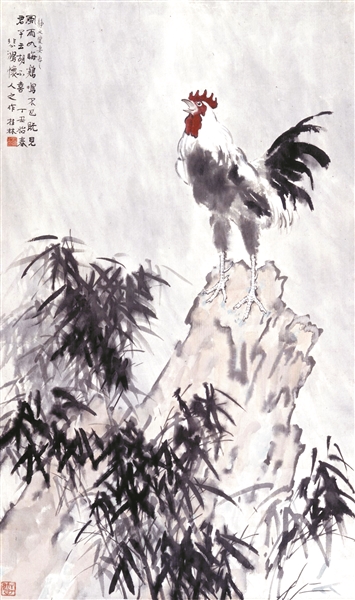 《風(fēng)雨雞鳴》,作于抗日戰爭全面爆發(fā)之年,是徐悲鴻寓意性動(dòng)物畫(huà)的典型,以《詩(shī)經(jīng)·風(fēng)雨》篇“風(fēng)雨如晦,雞鳴不已”為主題。